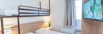 The Brit Hotel Tours Nord offers you 39 comfortable rooms, including double rooms with a double bed (160cm), twin rooms with 2 single beds and triple rooms.